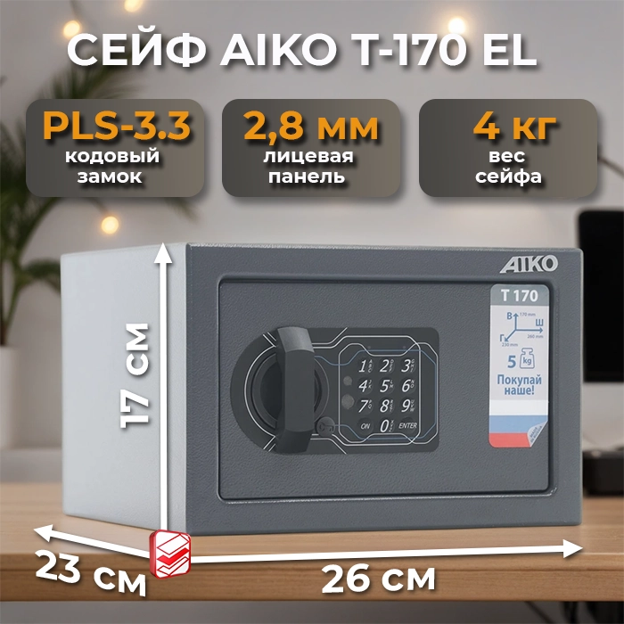 Сейф AIKO T-170 EL — это сочетание надежности, удобства и современного дизайна, которое станет отличным выбором для защиты ваших ценностей.